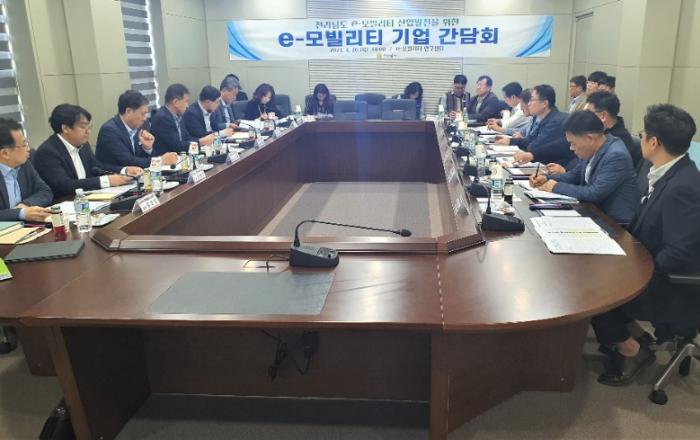 전라남도는 20일 영광 한국자동차연구원에서 e-모빌리티 산업 산·학·연·관 현장 간담회를 열어 기반 구축부터 산업 확산까지 3천400억 규모의 단계별 지원 시책을 소개하고, 산업 활성화 방안을 논의했다.이날 간담회에는 초소형전기차, 충전기 및 부품 등 관련 기업 관계자