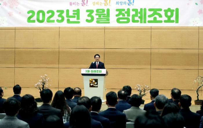 김영록 전라남도지사는 2일 “올해 전남서 대형 국제행사를 잇따라 개최하는 것은 코로나 일상회복시대에 시의적절한 것으로, 성공적인 개최를 통해 국내외 관광객을 많이 유치하고 전남의 가치를 드높이자”고 강조했다.김영록 지사는 이날 오전 도청 왕인실에서 열린 3월 정례조회를