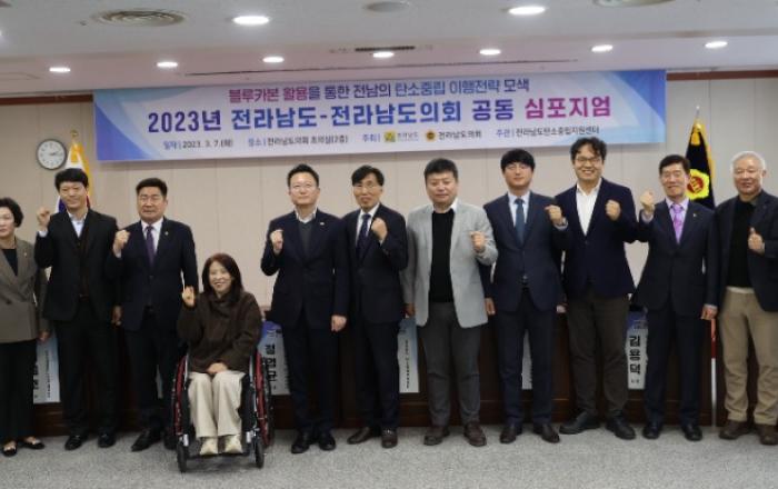 전라남도와 전남도의회는 7일 도의회 초의실에서 해양생태계에서 흡수되는 탄소인 블루카본을 확대함으로써 전남의 탄소중립 이행 전략을 마련하기 위해 ‘탄소중립 공동 심포지엄’을 개최했다.2050 탄소중립 비전 선포 2주년을 기념해 개최한 이번 심포지엄엔 관련 전문가, 도의원