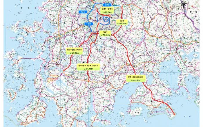 광주광역시(시장 강기장)는 서남권 중심도시로서 인근 시군 자치단체에 빠르고 편리하게 이동할 수 있는 사통팔달의 고속도로망 구축사업에 박차를 가하고 있다.광주시는 고속도로망 확충을 통해 앞으로 주변 광역권역 도시와 교통혼잡을 줄이고 광주‧전남 혁신도시를 중심으로 지역 균