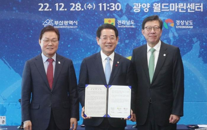 전라남도와 경상남도, 부산광역시가 천혜의 섬·갯벌·해안 등 세계적 해양관광자원의 보고(寶庫)인 남해안을 글로벌 해양관광 거점으로 조성하기로 뜻을 모았다.김영록 전남도지사는 28일 광양 월드마린센터에서 박형준 부산시장, 박완수 경남도지사와 함께 세계의 핫 플레이스로 부상