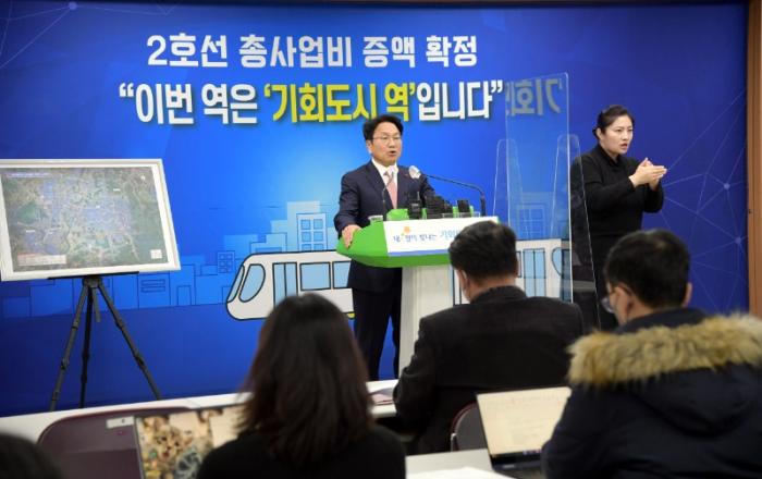 광주도시철도 2호선 건설 사업이 중앙정부와 협의 끝에 사업비 5883억원이 증액돼 공사에 속도를 낼 수 있게 됐다. 특히 그동안 경제성을 이유로 난색을 보였던 첨단~수완 임방울대로 구간 지하화도 정부 설득에 성공, 도시단절 및 교통 불편을 없애게 됐다. 강기정 광주광역