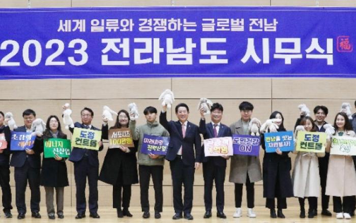 김영록 전라남도지사는 2일 “새해를 ‘세계와 경쟁하는 전남 대도약’ 원년으로 삼아 전남이 기회와 희망의 땅으로 떠오르도록 하겠다”고 새해 포부를 밝혔다.김영록 지사는 이날 도청 왕인실에서 열린 2023년 시무식을 통해 “지난 한 해 도민의 뜨꺼운 성원과 지지로 전남이