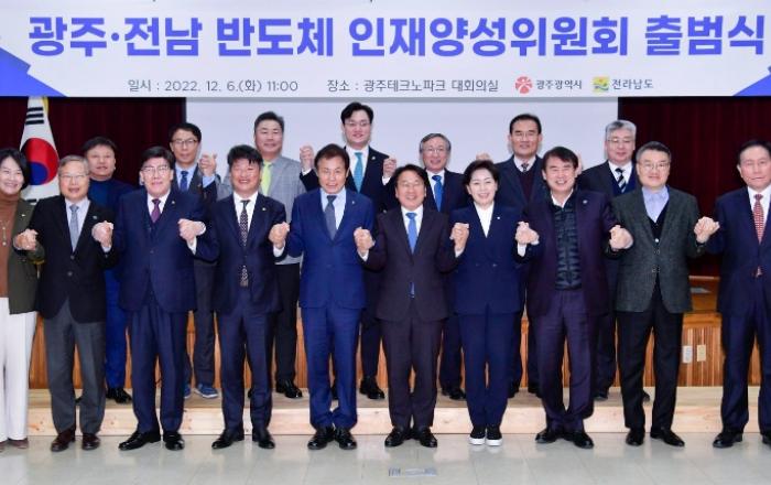 반도체 특화단지 유치에 박차를 가하고 있는 광주·전남이 각급 교육기관과 손을 맞잡고 대한민국 반도체 인재양성에 본격적으로 나섰다.광주광역시와 전라남도는 6일 광주테크노파크에서 강기정 광주광역시장과 박창환 전라남도 정무부지사, 양향자 국회의원, 정성택 전남대 총장 등 2