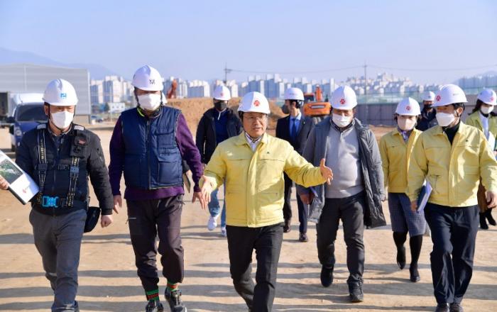 ▲ 강기정 광주광역시장이 7일 오후 서구 유촌동 광주도시철도 2호선 1단계 차량기지 건설현장에서 안전점검을 하고 있다.“시민의 안전한 일상이 민주주의의 완성입니다.”강기정 광주광역시장은 7일을 ‘시민 안전점검의 날’로 정하고, ‘언제 어디서나 안심도시 광주’를 만들기