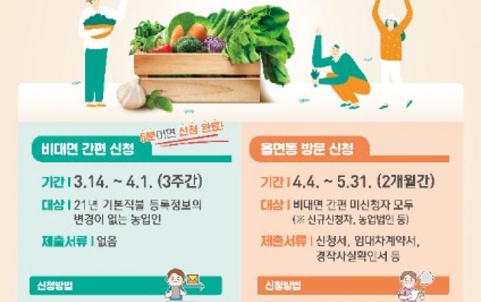 전라남도는 2022년 기본형 공익직불금 규모를 4천388억 원으로 확정, 지급을 시작했다고 밝혔다.기본형 공익직불제는 농업활동을 통해 환경보전, 농촌유지, 식품안전 등 농업농촌의 공익기능 증진과 농업인 등의 소득안정 도모를 위해 일정 자격을 갖추고 준수사항을 이행하는