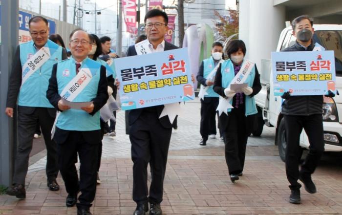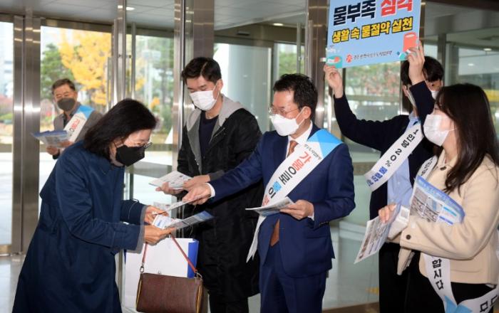 광주광역시 상수도사업본부(이하 ‘상수도본부’)는 9일 가뭄위기 상황 극복을 위한 거리 캠페인을 실시하며 물 절약 실천 알리기 홍보활동을 펼쳤다.특히 이날 캠페인에는 국민건강보험공단 광주전라제주지역본부가 참여해 홍보 피켓을 들고 전단지를 배부하는 등 시민들에게 물 절약
