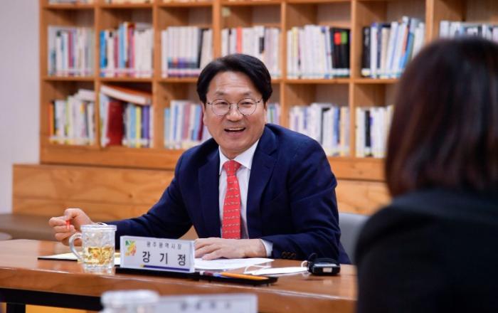 강기정 광주광역시장은 10일 오후 동구 무등빌딩에 위치한 광주여성가족재단을 방문해 현장 업무보고를 받았다. 업무보고에서는 김경례 광주여성가족재단 대표이사의 민선 8기 재단 운영방향 발표를 비롯해 ▲아동·청소년 돌봄 확대 ▲1인가구 사회안전망 강화 ▲가사수당 도입 ▲공공
