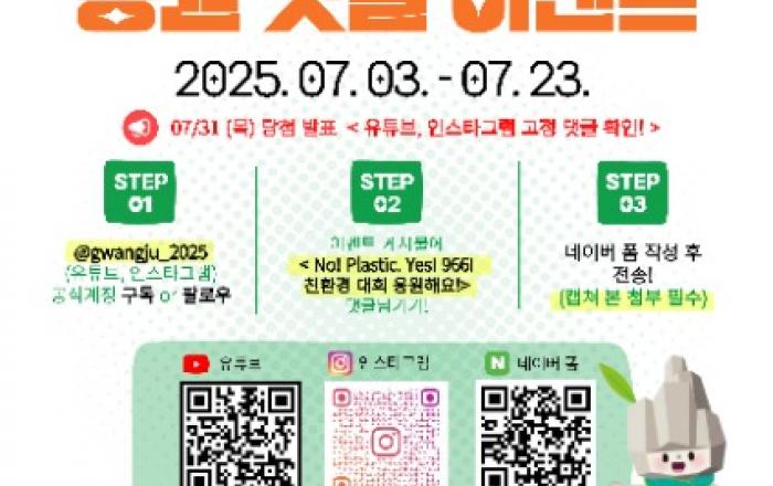 광주광역시(시장 강기정)는 오는 9월 열리는 ‘광주 2025 현대세계양궁선수권대회’와 ‘광주 2025세계장애인양궁선수권대회’의 성공 개최와 친환경 실천 문화 확산을 위해 3일부터 23일까지 특별 이벤트를 진행한다.이번 이벤트는 대회 공식 사회관계망(SNS) 계정(유튜브