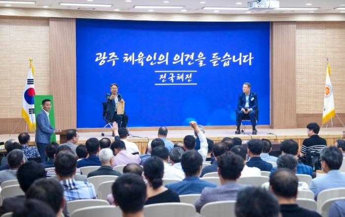 광주 체육인들은 “20년 만의 전국체전 유치를 통해 스포츠도시의 위상을 높여야 한다”며 “2015하계유니버시아드‧2019세계수영선수권대회 등 국제 스포츠대회 성공개최 경험을 토대로 2028년 제109회 전국체육대회 유치에 적극 나서자”고 입을 모았다.강기정 광주광역시장