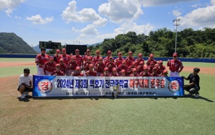 광주충장중학교 베이스볼클럽(충장BC)가 지난 5일부터 13일간 강원도 횡성군 횡성베이스볼파크에서 열린 ‘제3회 백호기 전국 중학교 야구대회’에서 준우승을 차지했다.대한야구소프트볼협회가 주관한 이번 대회는 전국중학교 야구부 및 클럽 45개 팀이 참가한 가운데 토너먼트전으