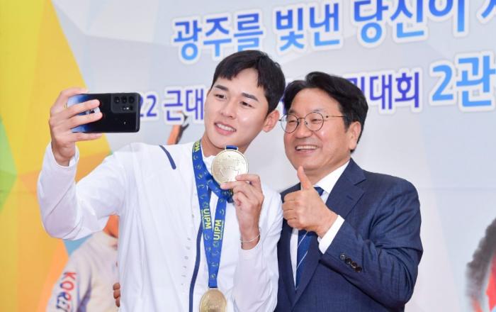 강기정 광주광역시장은 파리올림픽 출전하는 광주시 소속 국가대표 선수들에게 응원의 서한을 보냈다.강 시장은 제33회 파리올림픽 대회 개막을 사흘 앞둔 23일 막바지 훈련과 컨디션 조절에 나선 전웅태 등 광주시 소속 선수단에게 “뜨거운 심장으로 새로운 도전에 나섰다”며 “