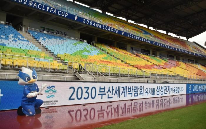 삼성전자가 ‘2030 부산세계박람회(엑스포)’ 유치를 기원하기 위해 스포츠 현장으로 홍보를 확대했다. 지난달부터 전국 삼성 디지털프라자 매장 광고를 통해 ‘2030 부산세계박람회’ 유치를 응원하고 있는 삼성전자는 지난 12일 경기부터 삼성 라이온즈 야구단의 선수 헬멧