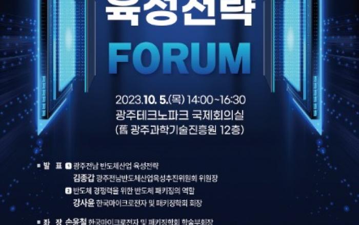 광주광역시(시장 강기정)는 오는 10월5일 오후 2시 광주테크노파크 국제회의실에서 ‘광주·전남 반도체산업 육성전략 포럼’을 개최한다. 이날 포럼은 강기정 광주시장과 김종갑 광주·전남반도체산업육성추진위원장, 김경만·양향자·이용빈 국회의원, 강사윤 한국마이크로전자 및 패키