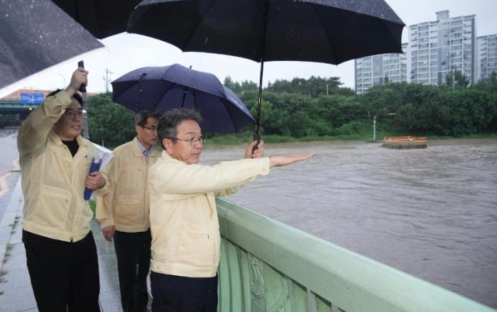 광주광역시(시장 강기정)는 17일 시간당 80㎜ 이상의 폭우가 쏟아지는 기상 특보 속에서 강기정 시장 주재로 긴급 상황판단회의를 개최하고, 주요 재해 우려지역에 대한 현장 점검을 실시하는 등 시민 생명과 재산 보호에 총력을 기울이고 있다.강기정 시장은 이날 오전 시청