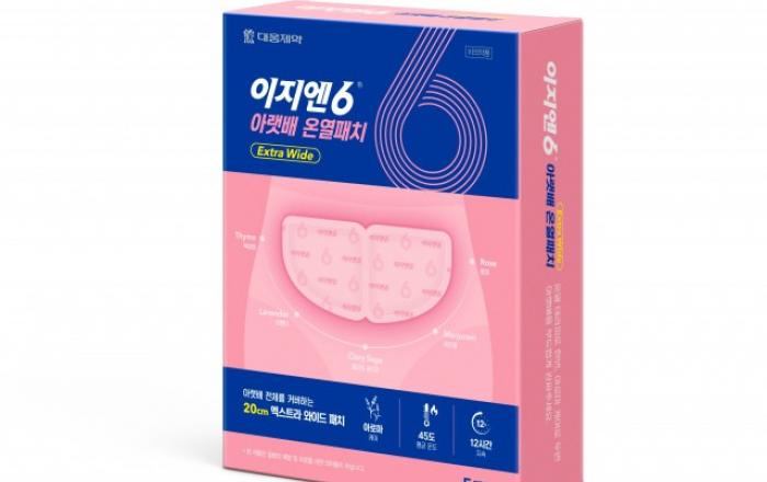 대웅제약은 ‘이지엔6 아랫배 온열 패치 Extra Wide’를 출시했다고 26일 밝혔다.‘이지엔6 아랫배 온열 패치 Extra Wide(이하 이지엔6 온열 패치)’는 대웅제약의 명품 브랜드 ‘이지엔6’ 라인업의 신제품으로 하복부를 따뜻하게 해 생리통을 겪는 여성들에게