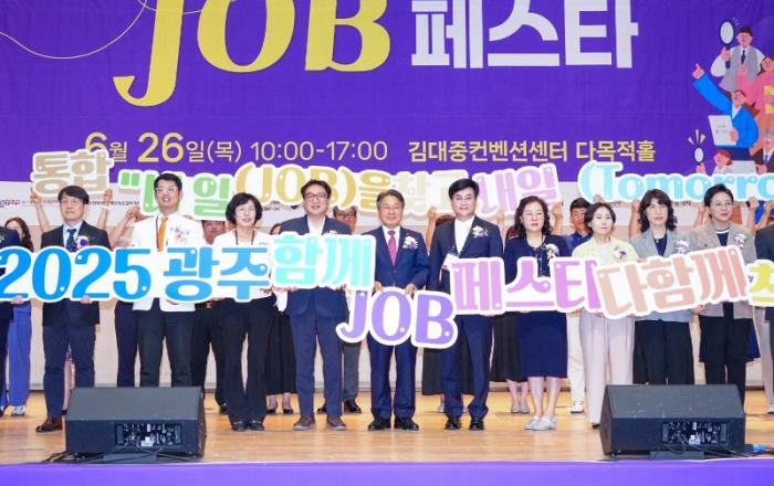 광주광역시(시장 강기정)는 26일 김대중컨벤션센터에서 열린 ‘2025 광주 함께 잡(JOB) 페스타’에 약 1500여명의 구직자가 참여한 가운데 성황리에 막을 내렸다.이번 박람회는 청년, 중장년, 경력단절여성, 결혼이주여성 등 다양한 계층을 아우르는 통합형 일자리 박람