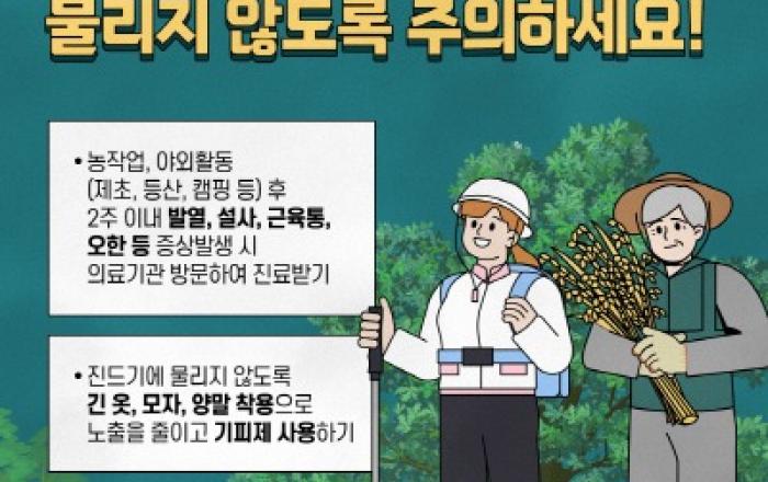 전라남도는 최근 기온 상승으로 진드기 활동이 활발해지고 개체수도 급증할 것으로 예상돼 진드기 매개 감염병 예방을 위해 피부 노출 최소화 등 야외활동 시 주의를 당부했다.4~11월 주로 발생하는 중증열성혈소판감소증후군(SFTS)과 쯔쯔가무시증은 농작업, 등산, 캠핑, 벌