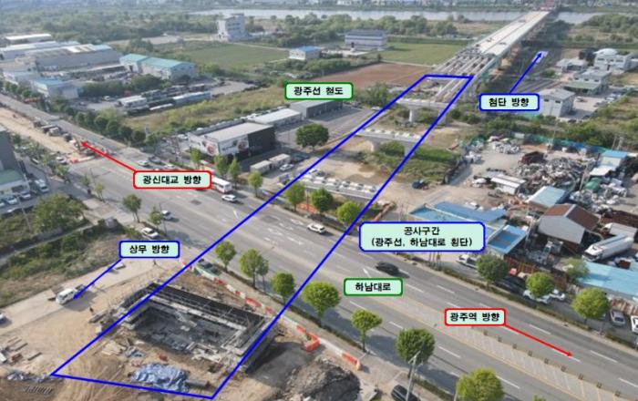 광주광역시 종합건설본부는 오는 16일부터 20일까지 ‘상무지구~첨단산단 간 도로개설공사’가 진행되는 하남대로 구간(북구 동림동 933-70 일원)에 대해 부분 교통통제를 실시한다.‘상무지구~첨단산단 간 도로개설공사’는 상무지구 시청사 뒤편과 첨단 보훈병원 간 4.98㎞