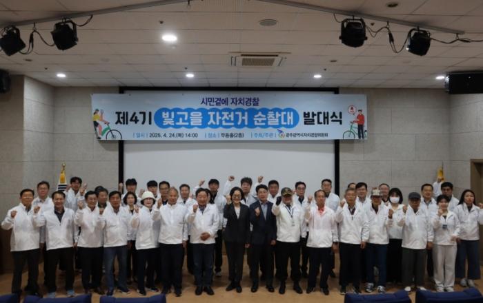 광주광역시자치경찰위원회는 24일 시청 무등홀에서 ‘제4기 빛고을 자전거 순찰대’ 위촉식을 갖고, 공식 출범했다.빛고을자전거순찰대는 시민들이 자전거타기 취미활동을 하면서 마을 안전 사각지대가 없는지 스스로 살펴보는 역할을 수행하는 시민참여형 협력 치안 시책이다. 이번 제