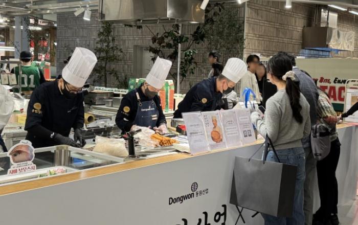 동원산업이 25일 여의도에 위치한 더현대 서울에서 인기 일식 셰프이자 초밥 명인인 ‘나카무라 코우지’와 손잡고 팝업스토어를 열었다고 밝혔다.이번 팝업스토어에선 국내 최대 수산기업인 동원산업이 잡은 신선한 참치와 각종 횟감을 코우지 셰프가 현장에서 조리해 초밥, 후토마끼