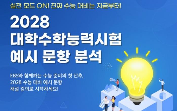 EBS가 4월 15일(화) 2028학년도 대학수학능력시험(이하 수능) 예시 문항을 최초로 분석한 해설 강의 및 분석 자료를 제공한다.교육부와 한국교육과정평가원(이하 평가원)은 학생, 학부모, 학교 현장의 궁금증 해소 및 수능 준비 지원을 위한 2028학년도 수능 예시