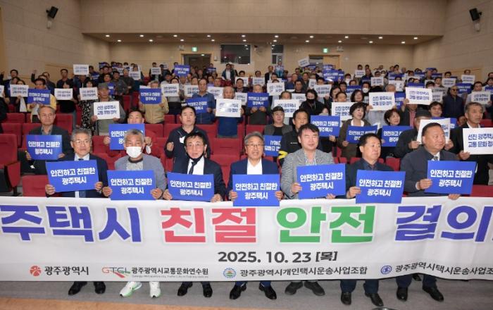 광주광역시(시장 강기정)는 23일 광주교통문화연수원에서 ‘택시운수종사자 친절·안전 결의대회’를 열고 신뢰받는 택시 서비스 구현을 위한 실천 의지를 다졌다.이번 결의대회는 최근 택시요금 인상에 따른 시민 공감대 확산과 함께 택시업계의 서비스 품질 제고를 통해 시민이 안심