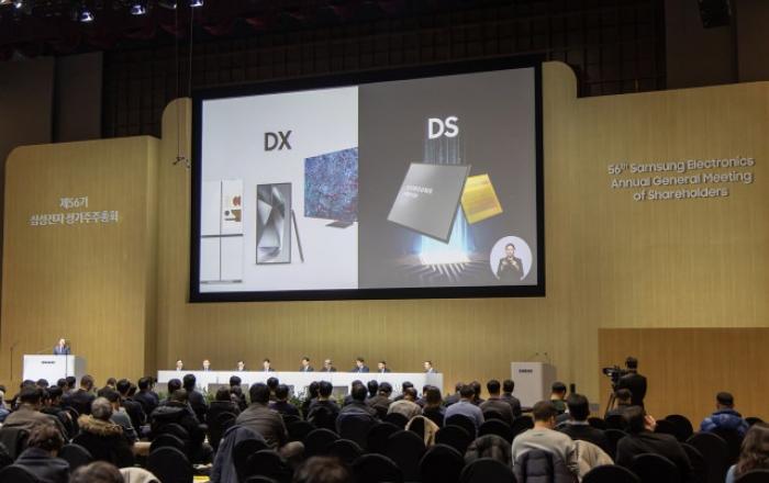 삼성전자는 19일 경기도 수원시 수원컨벤션센터에서 열린 제56기 정기 주주총회에서 DX부문장 한종희 부회장과 DS부문장 전영현 부회장이 각 사업 부문별 경영 전략에 대해서 주주들에게 설명했다.◇ DX부문차별화된 AI로 모두를 위한 인텔리전스 구현삼성전자 DX부문은 AI