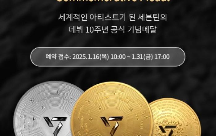 한국조폐공사(www.komsco.com)가 세븐틴 데뷔 10주년을 맞아 세븐틴의 노력과 발자취를 상징적으로 압축하여 표현한 공식 기념메달을 16일 출시했다.이번 기념메달은 ㈜하이브(대표 이재상)와 협력하여 데뷔 10주년을 축하하기 위해 두 차례에 걸쳐 공식 기념메달을