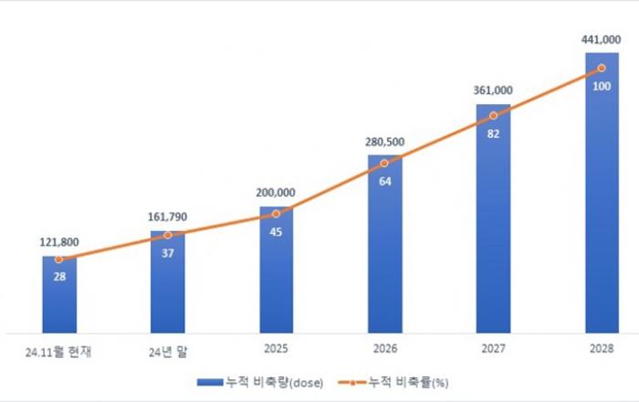 정부가 백신 수급 안정을 위해 현재 비축률 27.6%인 4종의 백신을 5년 이내에 비축률 100%로 끌어올린다. 4종의 백신은 국가예방접종 백신 24개 품목 중 피내용 BCG(결핵), MMR(홍역·유행성이하선염·풍진), PPSV(폐렴구균), Tdap(디프테리아·파상풍·