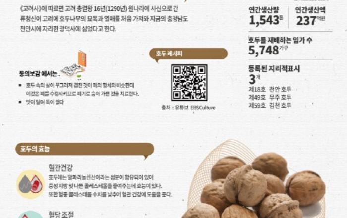 산림청은 11월 이달의 임산물로 사람의 뇌를 닮은 두뇌 영양간식인 ‘호두’를 선정했다고 15일 밝혔다.호두는 뇌 건강의 핵심적인 영양소인 오메가-쓰리(3) 지방산과 폴리페놀 등 항산화 성분이 풍부하게 함유돼 기억력을 높이고 노화의 주범인 산화 스트레스로부터 뇌를 보호한