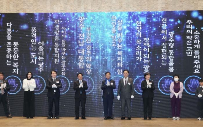 광주광역시(시장 강기정)는 광주시사회복지협의회와 함께 16일 서구 웨딩그룹 위더스 광주에서 민·관·정·복지가 한자리에 모여 복지 비전을 공유하는 ‘2026년 광주복지 신년인사회’를 개최했다.이날 인사회에는 강기정 시장을 비롯해 신수정 시의회 의장 및 시의원, 이정선 시