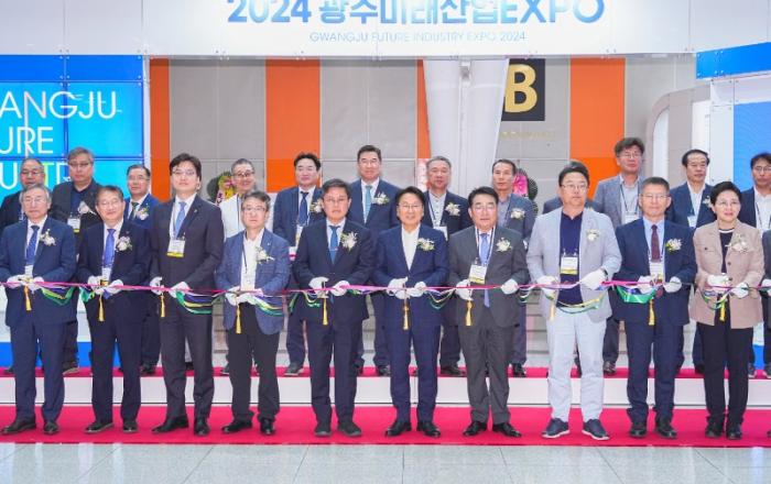 ‘2024 광주 미래산업 엑스포’가 27일 개막, 사흘 일정에 돌입했다. 전기비행기, 전기차 등 미래 모빌리티와 인공지능(AI)‧로봇‧드론 등 광주 첨단기술을 한눈에 볼 수 있다. 이날 오후 2시 김대중컨벤션센터 전시홀에서 열린 개막식에는 강기정 광주광역시장을 비롯해