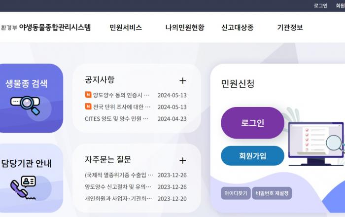 야생동물을 키우기 위해 진행해야 하는 신고·허가 절차가 간편해졌다. 특히, 국제적으로 엄격하게 관리되고 있는 ‘사이테스’의 양도·양수 절차도 기존보다 간소화됐다. 환경부가 지난해 12월부터 운영을 시작한 야생동물종합관리시스템은 ‘사이테스’에 해당하는 생물을 입·분양할