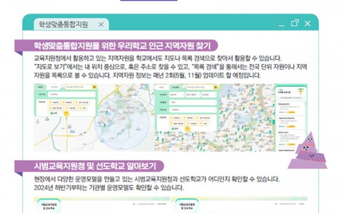 학교 인근의 학생 지원기관과 관련 서비스 등을 손쉽게 찾아 활용할 수 있는 ‘학생맞춤통합지원’ 누리집이 개통된다. 2일 교육부에 따르면, 이번에 개통되는 누리집은 학생맞춤통합지원 정책에 대한 소개는 물론, 학교나 학생이 학교 인근의 학생 지원기관 및 관련 서비스 등을