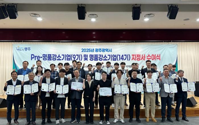 광주광역시(시장 강기정)는 지역경제를 이끌 ‘제9기 프리(Pre)-명품강소기업’ 13개사와 ‘제14기 명품강소기업’ 19개사를 선정, 26일 광주테크노파크에서 ‘지정서 수여식’을 개최했다.‘명품강소기업 육성사업’은 성장 가능성과 혁신역량을 갖춘 지역 유망 중소기업을 발