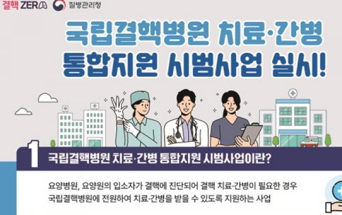 정부가 요양병원과 요양원에서 발생한 결핵환자에게 전문적인 입원치료 및 간호·간병통합서비스 등을 무료로 제공한다. 질병관리청은 요양병원, 요양원 입소자 중 전염성 결핵환자를 대상으로 하는 ‘국립결핵병원 치료·간병 통합지원 시범사업’을 오는 5월 1일부터 시작한다고
