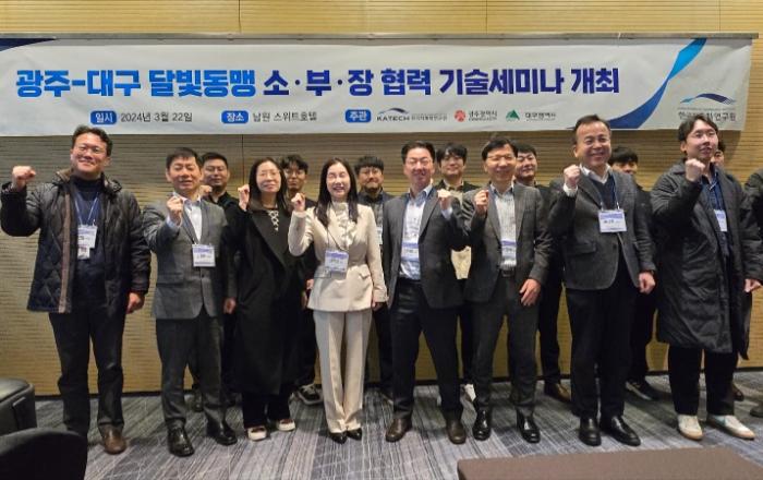 광주광역시(시장 강기정)와 대구광역시는 한국자동차연구원(KATECH)과 공동으로 22일 전북 남원 스위트호텔에서 ‘광주-대구 달빛동맹 소‧부‧장 협력 기술세미나’를 개최했다.※ 한국자동차연구원(KATECH : Korea Automotive Techonology Inst