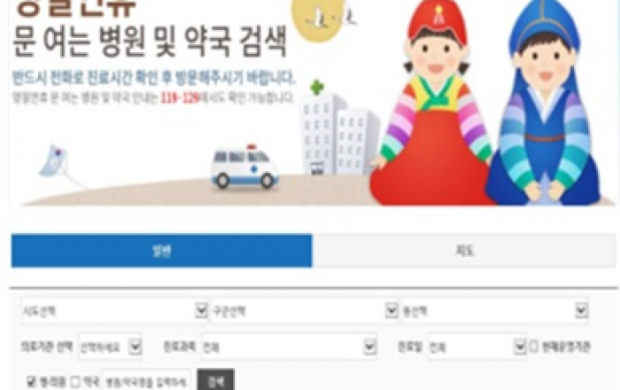 설 연휴에 병원과 의원, 약국 등 모두 7800여 곳이 문을 연다. 보건복지부는 설 연휴 기간에 응급의료정보앱과 콜센터 등을 통해 문 여는 병원과 의원, 약국 정보를 제공한다고 8일 밝혔다. 병·의원, 약국 정보 등은 ▲응급의료포털( www.e-gen.or.kr
