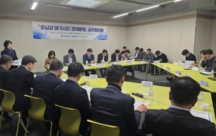 광주광역시(시장 강기정)는 지난 14일 오후 국립아시아문화전당(ACC)에서 전라남도, 전북특별자치도와 함께 호남 경제를 활성화와 상생발전을 도모하기 위한 ‘호남권 메가시티 경제동맹 실무협의회’를 개최했다.실무협의회는 지난해 7월4일 광주·전남·전북이 합의한 ‘호남권 메