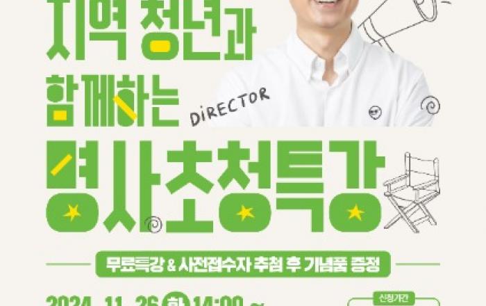 광주광역시(시장 강기정)는 26일 오후 2시 시청 대회의실에서 장항준 영화감독을 초청해 ‘2024 지역청년과 함께하는 명사 청년특강’을 연다.장항준 감독은 ‘라이터를 켜라’로 데뷔한 후 영화감독과 연출, 대학 강단, 예능프로그램 등 다방면에서 활동하며 청년들에게 영향력