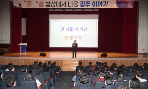 강기정 광주광역시장은 7일 오후 전문대 중 유일하게 차세대반도체 혁신융합대학으로 지정된 조선이공대에서 현장대화 ‘청춘이 묻고 시장이 답하다’로 청년들을 만났다.광주시가 최근 반도체 설계(팹리스)기업 에이직랜드 유치에 성공하며 인력양성·취업 지원 협력에 속도를 내고 있는