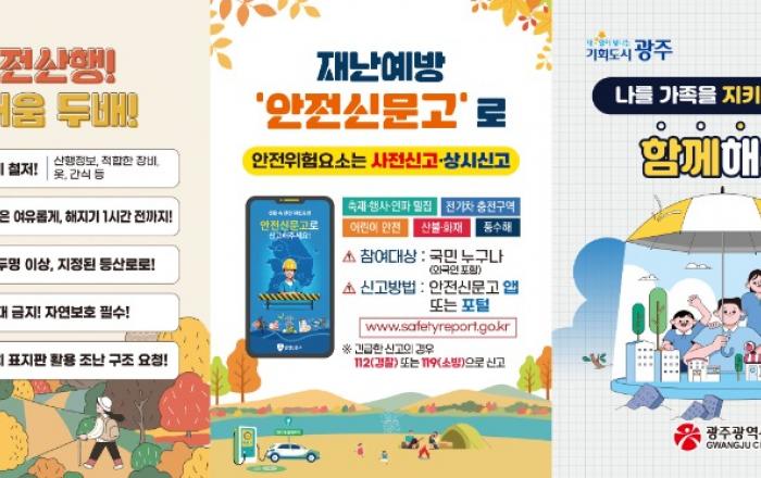 광주광역시(강기정 시장)는 오는 18~20일 김치축제가 열리는 시청 야외광장에서 안전캠페인을 진행한다.캠페인은 행사장을 찾는 시민을 대상으로 ▲보행자 우선, 차량 우회전 방법 ▲전동킥보드 헬멧 사용 및 1인 탑승 등 이용수칙 ▲안전산행을 위한 준비 및 주의사항 ▲축제·
