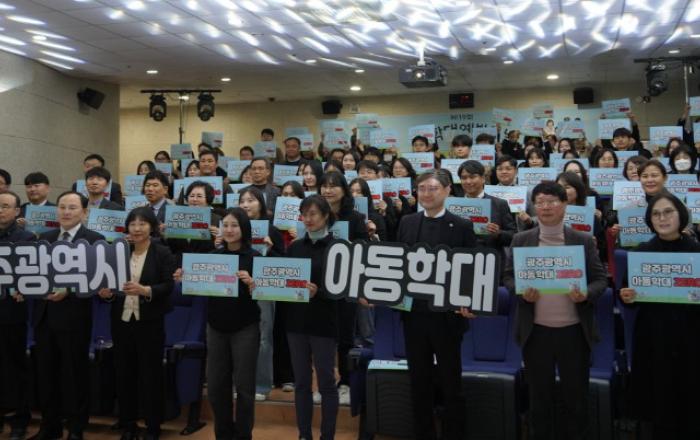 광주광역시(시장 강기정)는 아동학대 예방의 날인 19일 시청 무등홀에서 ‘제19회 아동학대 예방의 날 기념식’을 개최했다.‘광주광역시 아동학대 ZERO’를 주제로 열린 이날 기념식에는 광주시·자치구·경찰청·교육청·아동복지시설 관계자 등 150여 명이 참석해 아동이 존중