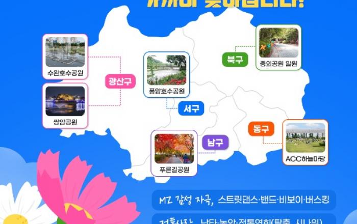 광주광역시(시장 강기정)는 시민들이 일상에서 공연을 즐길 수 있는 찾아가는 문화공연 ‘예술愛(애) 물든 가을’ 프로그램을 운영한다. ‘예술愛(애) 물든 가을’은 9~10월 5개 자치구별로 야외무대를 활용해 진행하며, 다양한 장르와 다양한 세대가 함께하는 공연을 선보여