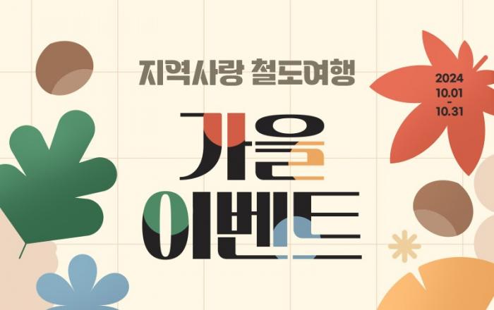 한국철도공사(코레일)가 인구감소지역 관광 활성화를 위해 출시한 여행상품 ‘다시 잇는 대한민국, 지역사랑 철도여행’ 가을 이벤트를 진행한다고 2일 밝혔다.‘지역사랑 철도여행’은 열차 승차권을 50% 할인받고 전국 23개 인구감소지역을 여행할 수 있는 기차여행 상품으로