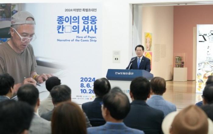전남도립미술관은 여수 출신 허영만 작가 데뷔 50주년을 맞아 6일 ‘종이의 영웅, 칸의 서사’ 특별초대전을 개막했다.10월 20일까지 이어지는 이번 전시는 ‘만화가 허영만’이 한국 만화사에 끼친 영향력과 예술로서 만화를 보여주는 자리로 마련됐다.개막식에는 김영록 전남
