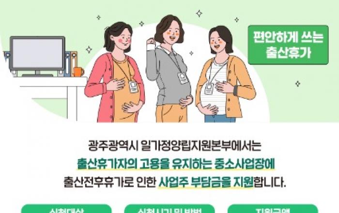 광주광역시 일가정양립지원본부는 임산부 근로자의 출산 전후 휴가 등에 따른 부담금을 지원하는 ‘임산부 직장맘 고용유지 지원사업’ 대상 사업장을 오는 10일부터 선착순 모집한다.‘임산부 직장맘 고용유지 지원사업’은 임산부의 일·가정 양립을 든든하게 지원하고 중소사업장의 고