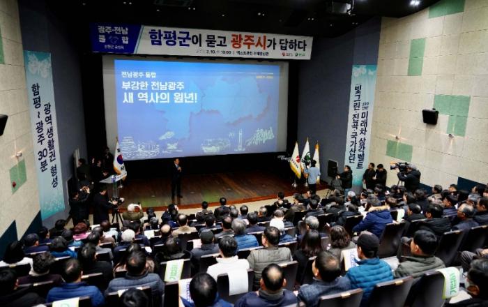 광주광역시(시장 강기정)는 10일 오전 함평군 엑스포공원 주제영상관에서 ‘광주전남 통합 함평군 상생토크’를 개최하고, 통합 추진배경과 함평의 발전전략을 공유했다.이날 상생토크에는 강기정 광주시장과 이정선 광주시교육감, 이상익 함평군수, 이남오 함평군의장을 비롯해 지역주