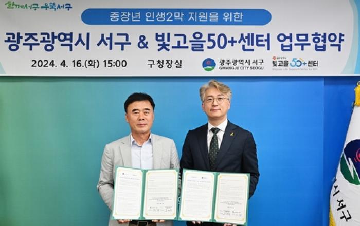 광주광역시 서구와 빛고을50+센터가 중장년(45세∼65세 미만) 인생 2막을 지원하기 위해 손을 맞잡았다. 양 기관은 지난 16일 업무협약을 체결하고 중장년인 45세 이상 65세 미만의 주민들을 위해 ▲정보교환을 통한 지역사회 중심의 전문적이고 통합적인 정책 구성